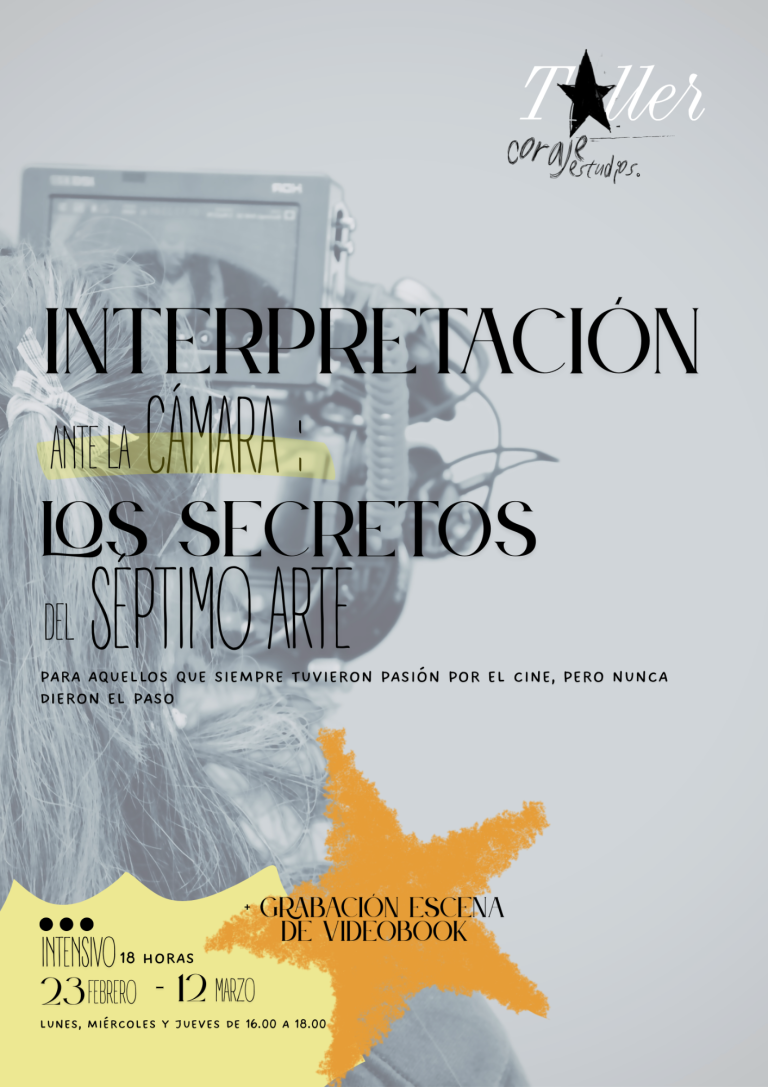 Ser actriz o actor puede formar parte de muchos ámbitos artísticos, y uno de ellos es el mundo audiovisual. Si siempre has querido formar parte de la magia de la gran pantalla, este es tu taller.